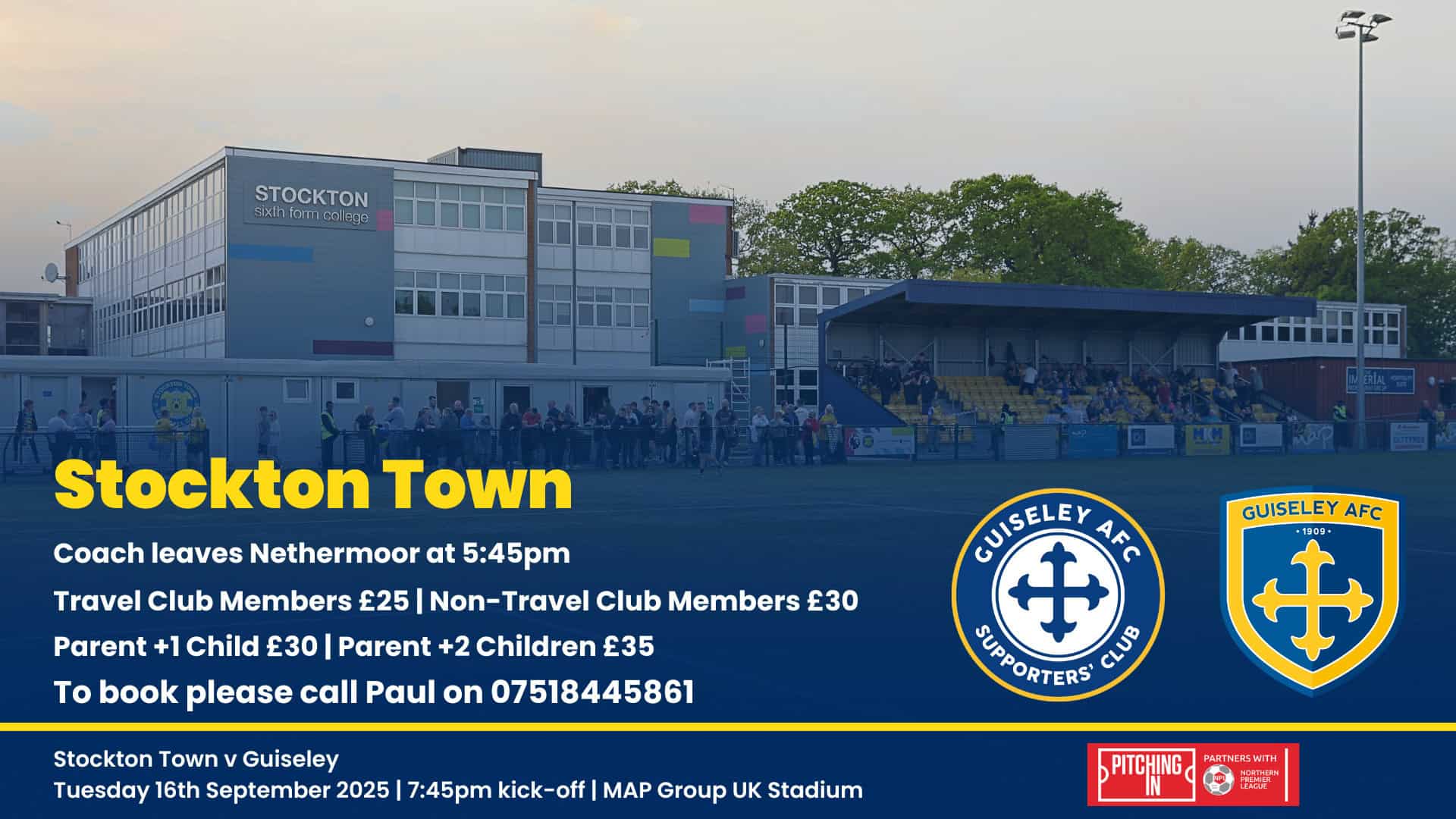 Coach travel is available with Guiseley AFC Supporters’ Club, just call Paul on 07518 445861 to secure a seat.