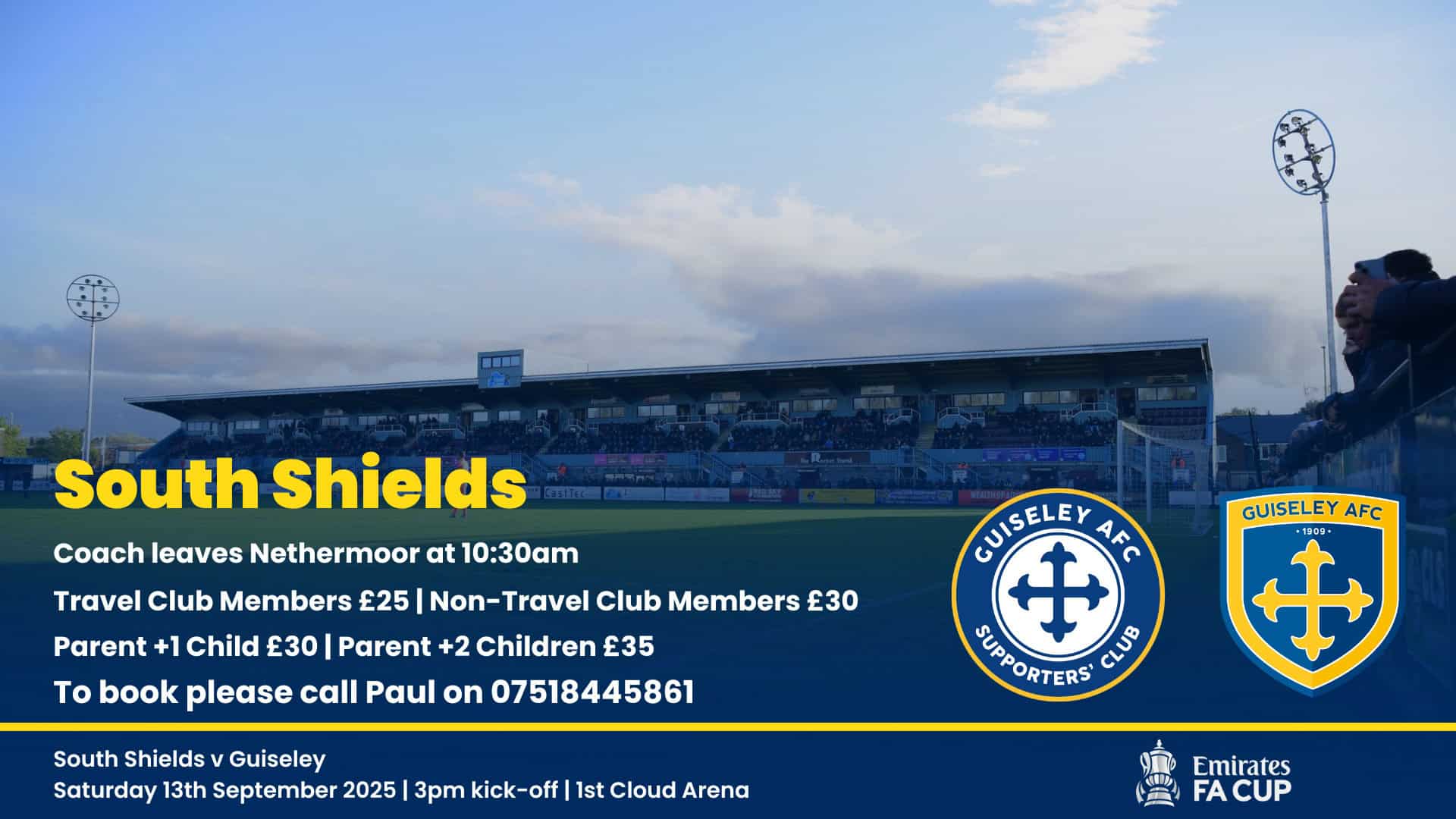 Coach travel is available with Guiseley AFC Supporters’ Club, just call Paul on 07518 445861 to secure a seat.