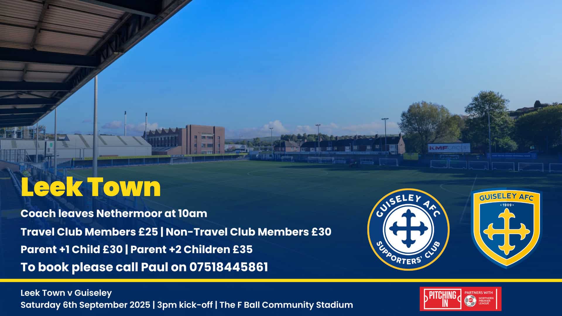 Coach travel is available with Guiseley AFC Supporters’ Club, just call Paul on 07518445861 to secure a seat.