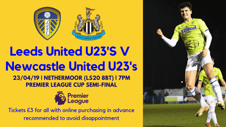 Leeds United U23’s vs Newcastle United U23’s Premier League Cup semi-final will take place on Tuesday 23rd April at Nethermoor,