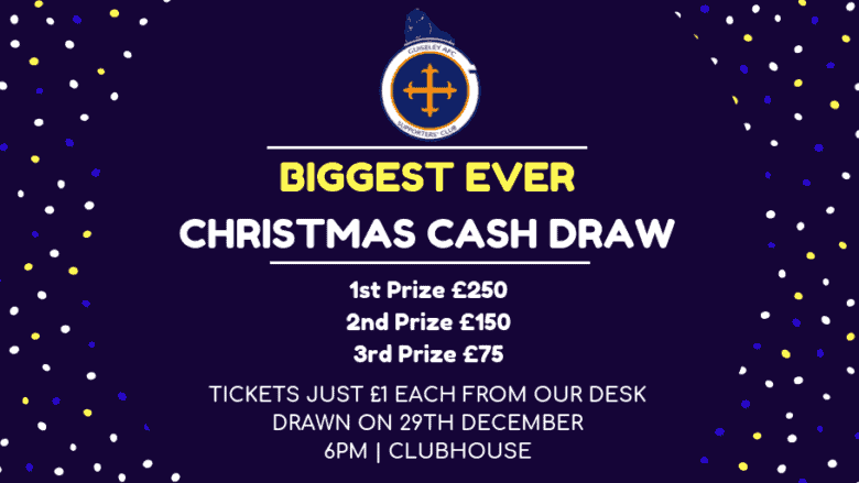 The Guiseley AFC Supporters’ Club Christmas Cash Draw will be held in the clubhouse after the visit from Altrincham on