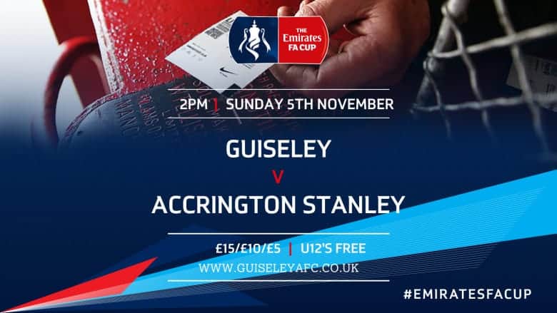 Our Emirates FA Cup First Round Proper tie against Accrington Stanley will take place on Sunday 5th November, kicking-off at