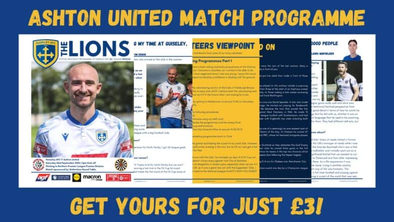 The Lions return to Nethermoor on Saturday and the matchday programme is back as we face Ashton United, it’s still