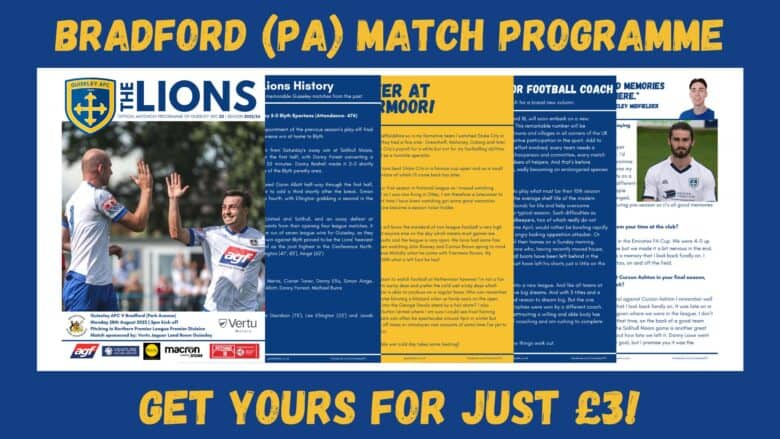 The Lions matchday programme is back on Bank Holiday Monday for our local derby with Bradford (Park Avenue) still available