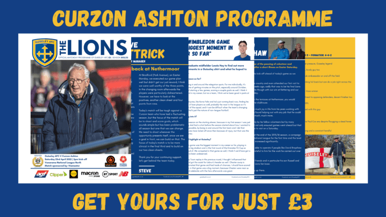 The 17th issue of The Lions matchday programme covering our match with Curzon Ashton will be on sale on Saturday